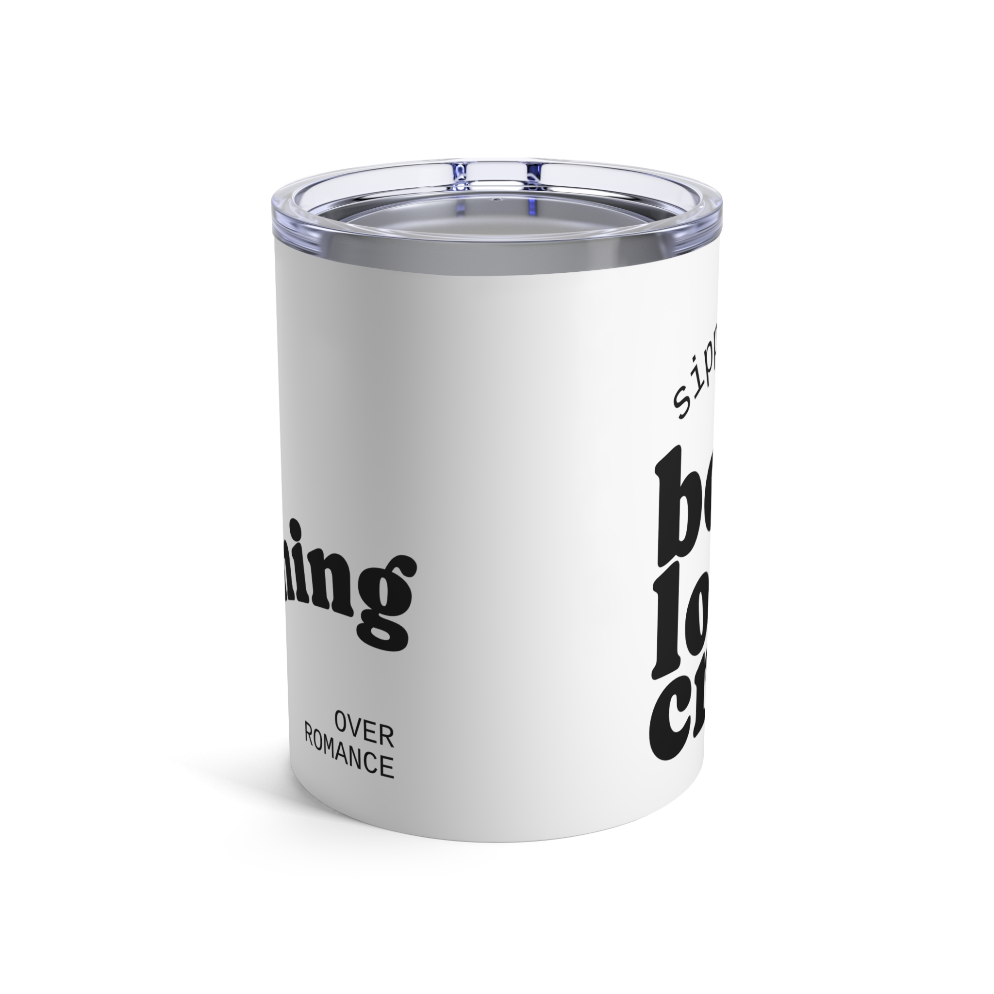 .: Vacuum insulated steel body with a clear push on lid with a rubber gasket (no lid cap)